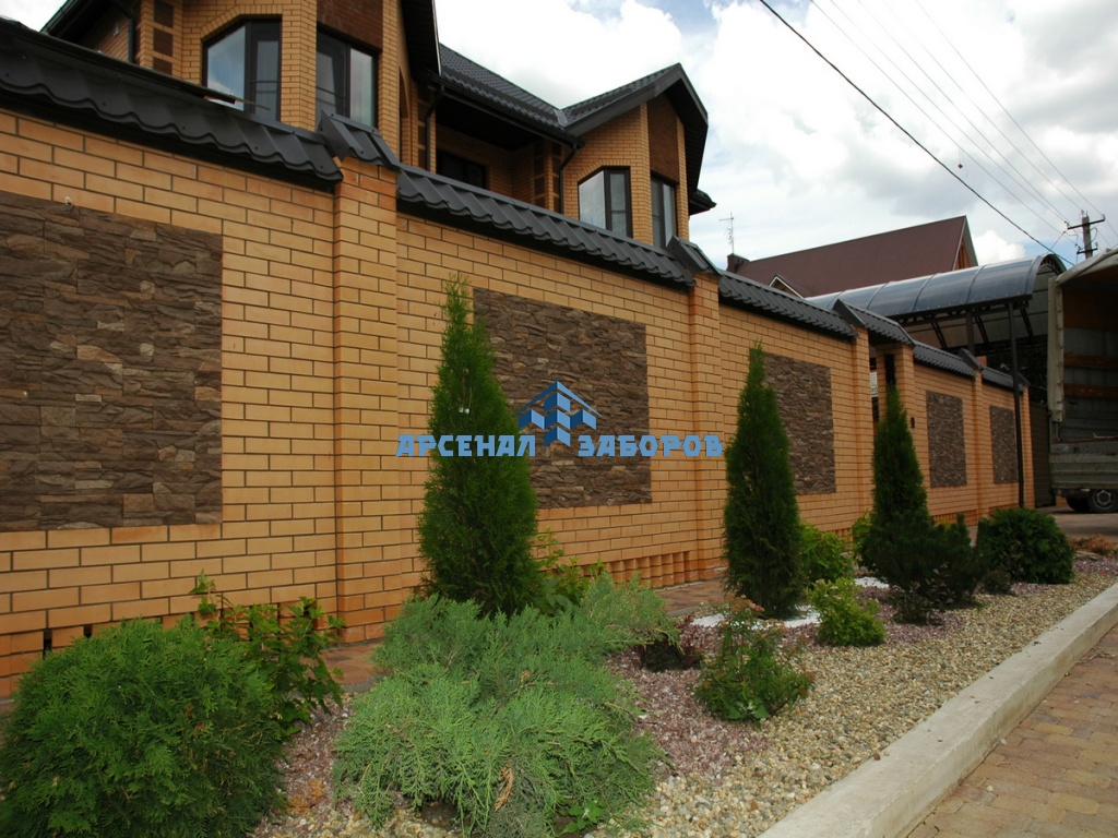 Кирпичный забор с камнем 15 метров