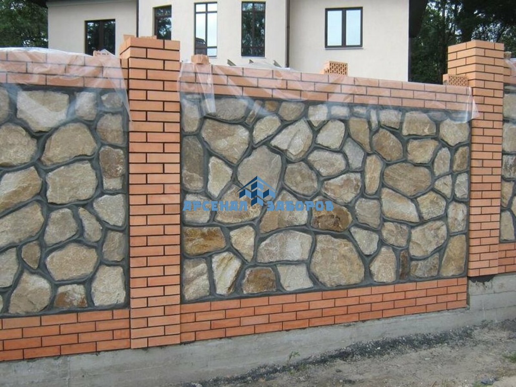 Кирпичный забор с камнем 90 метров